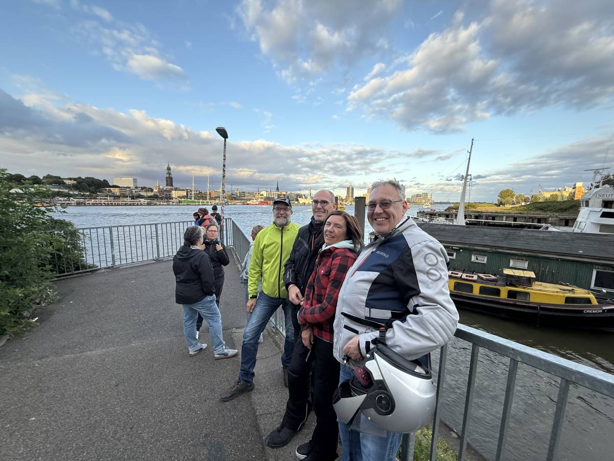 Ein herzlicher Empfang für an die 300 Fahrer wurde uns in der schönsten Location für ein solches Fest beschert: Die Freiluftschule direkt an der Elbe im Moorwerder Hauptdeich.