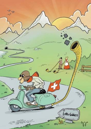 Unser erster Vorsitzender, Thomas Brandherm, hat bereits zum Anfang der Saison einige Kilometer gesammelt. Er war auch bei den Vespa World Days in Interlaken am 18.06.2023 vor Ort.