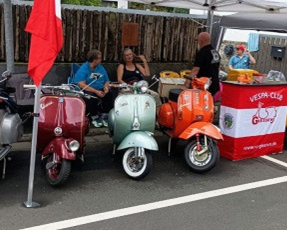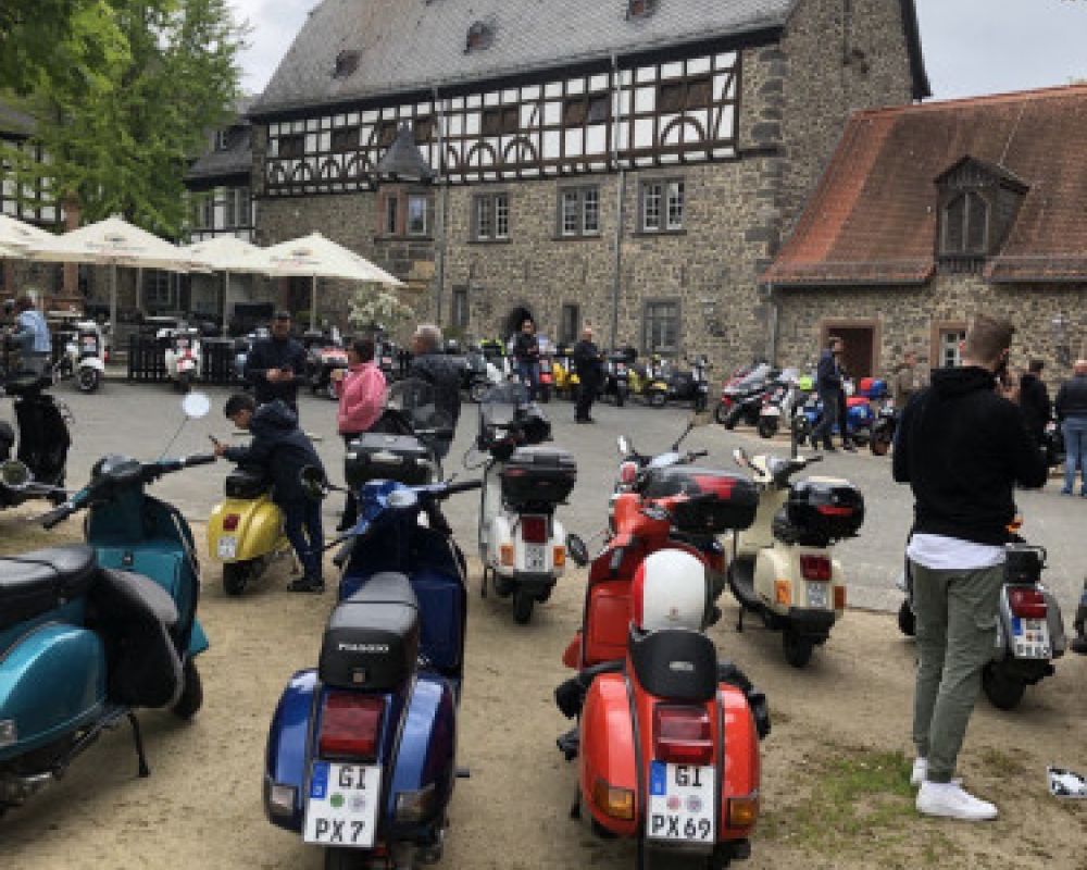 Am Samstag, dem 08.07.2023 hatte das das 11. Braunfelser Vespa-Treffen stattgefunden. Treffpunkt war dort wieder der Marktplatz unterhalb der Burganlage. Der VC Giessen hatte sich zur gemeinsamen Fahrt um 11:30 Uhr am Christoph-Rübsamen-Steg getroffen und fuhr um ca. 11:45 Uhr in Richtung Braunfels!