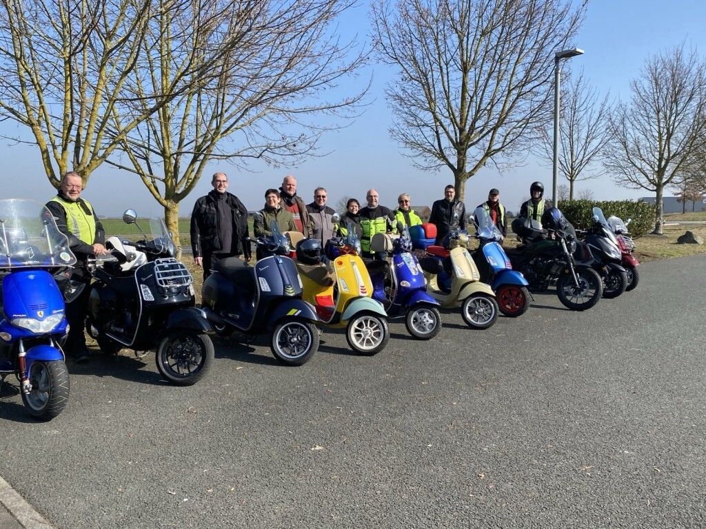 Ziemlich spontan, aber bei bestem Vorfrühlingswetter, haben wir eine schöne Ausfahrt gemacht. 12 Roller sind über viele Kurven, bergauf und bergab das Lahntal entlang gerollert.
