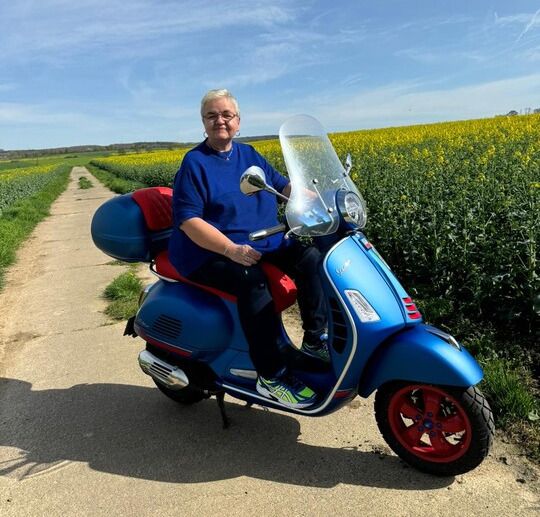 Ich fahre erst seit 2015 Roller, damals eine 50er Sprint, dann 2022 hab ich den B196 gemacht und mir dann auch gleich mein heutiges Schätzchen zugelegt, eine gts 125 ss. Bei mir muss es knallen und das am besten in blau! Seit 2023 bin ich die Kassiererin im VC Gießen, klingt vielleicht nicht so spannend - aber mir macht es großen Spaß. Ich freue mich wie verrückt wenn die kalte Jahreszeit vorbei ist, endlich wieder mit meinem Rollerchen durch Mittelhessen zu düsen, am liebsten mit unserem Fahrtenleiter Martin, aber natürlich auch in kleiner Runde!